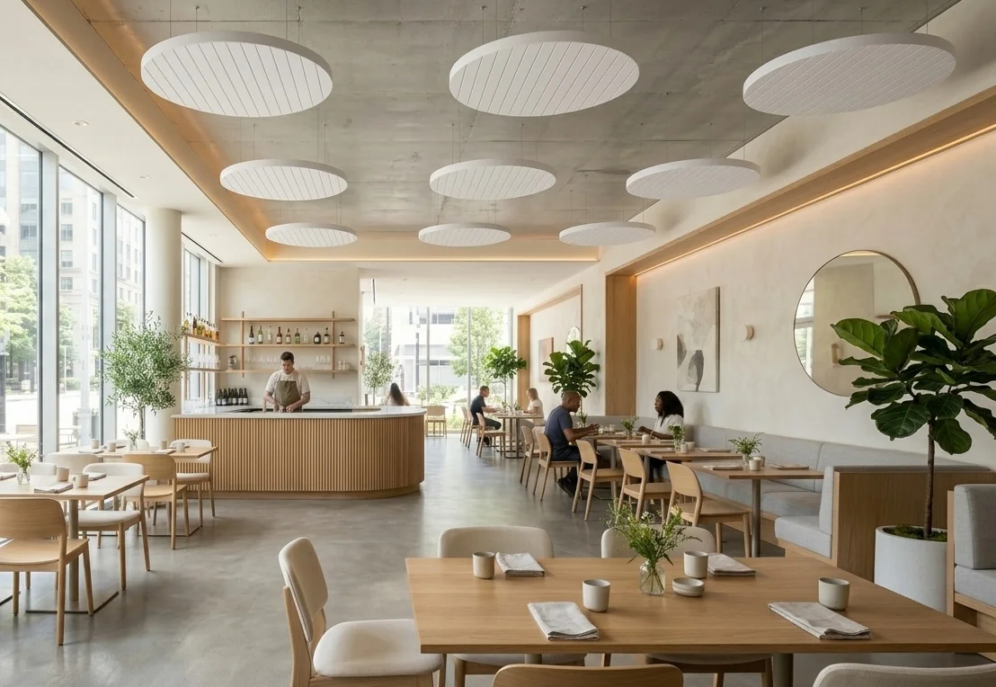 Conçu pour réduire la réverbération, ce panneau suspendu apporte également une touche esthétique contemporaine à l’aménagement intérieur.